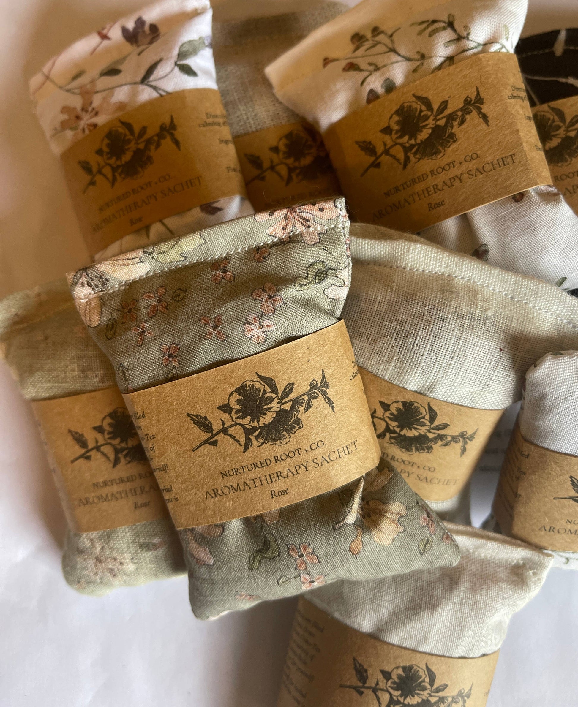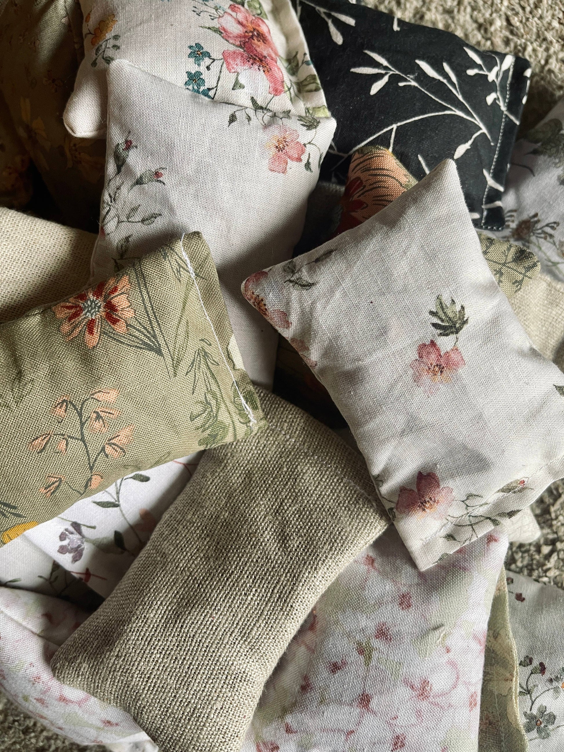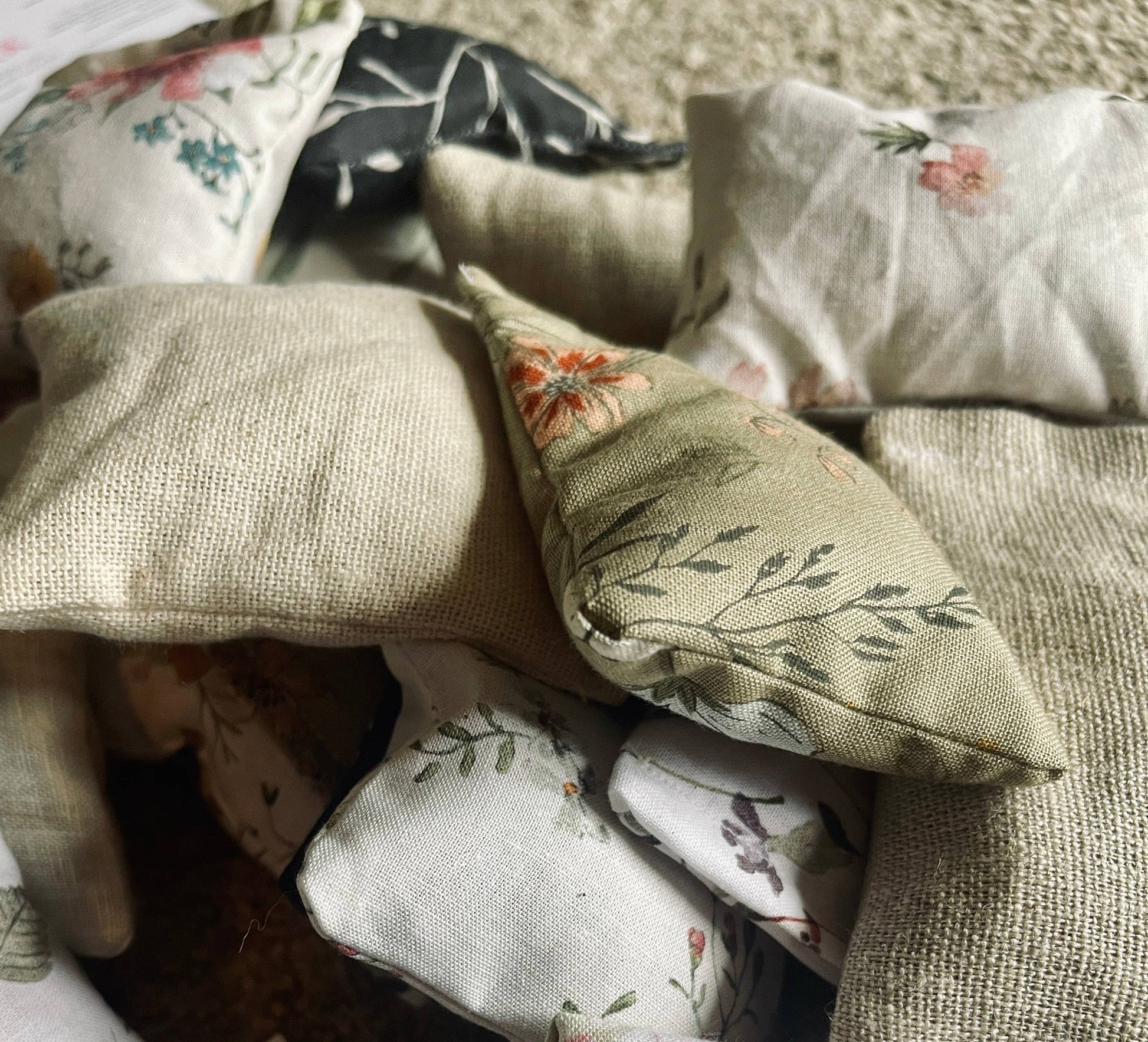 A beautiful assortment of handmade sachets filled with organic lavender, chamomile, or rose buds. Sewn together with scrap fabric from rice bags to reduce waste with 100% linen or cotton in a variety of beautiful florals and nature inspired fabric, these little sachets are the perfect addition to any gift or for yourself! Place in your pillowcases, your car, the dryer, backpack/purse, in drawers, or for use to sniff for herbal therapeutic benefits.