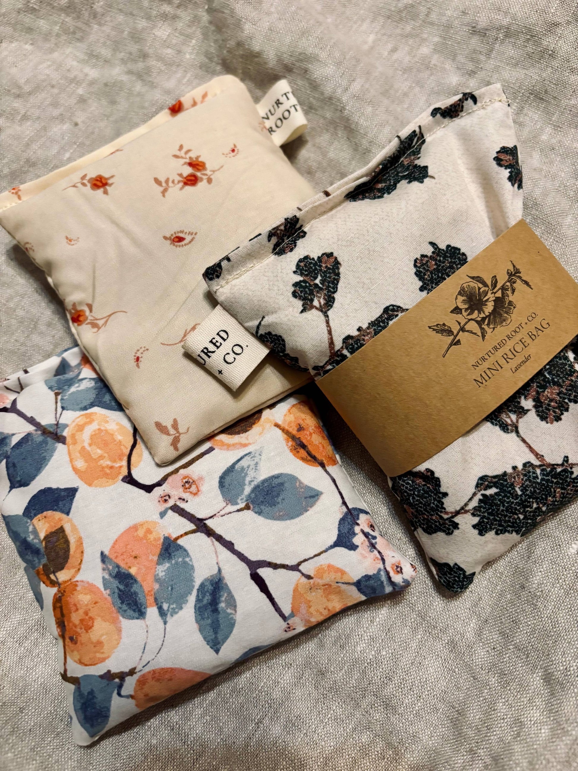 Handmade to order 100% linen or cotton in beautiful assorted florals and nature inspired colors, filled with rice. Small shape is great for spot treatment on forehead or for little ones.