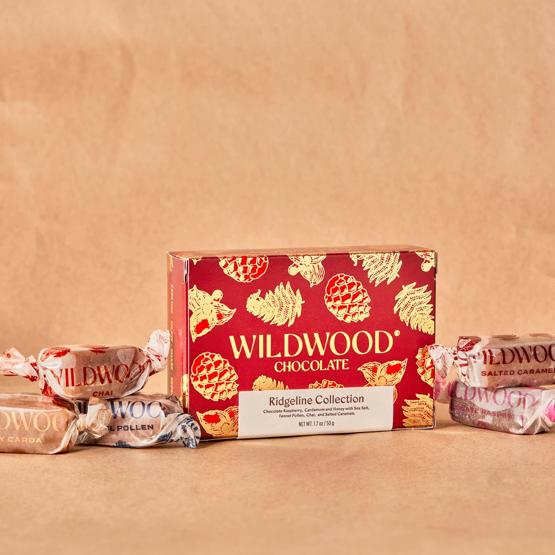 The Ridgeline Collection of caramel includes our Chocolate Raspberry, Cardamom and Honey with Sea Salt, Fennel Pollen, Chai and Salted Caramels.
